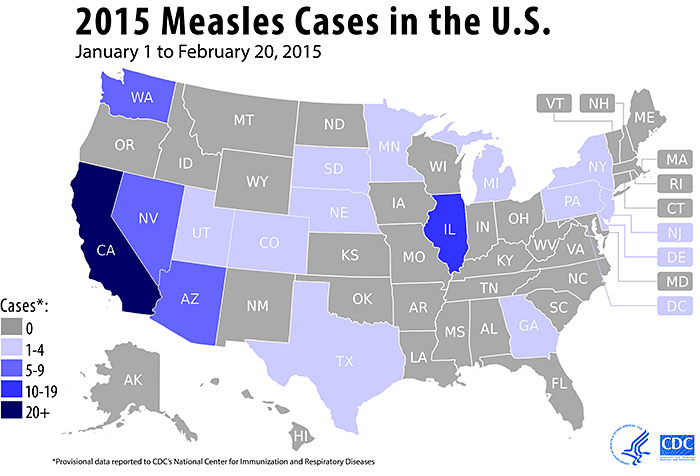 There have been 154 measles cases in the United States this year. Most of the cases are linked to the measles outbreak tracing back to Disneyland. The outbreak has reached 17 states, including Utah. The majority of cases have occurred in California, with 104 out of the reported 154, and only 2 have been from Utah. Measles can cause serious complications, especially in young children. About 1 in 4 who get measles in the U.S. will be hospitalized and 1 or 2 out of 1,000 will die from measles.