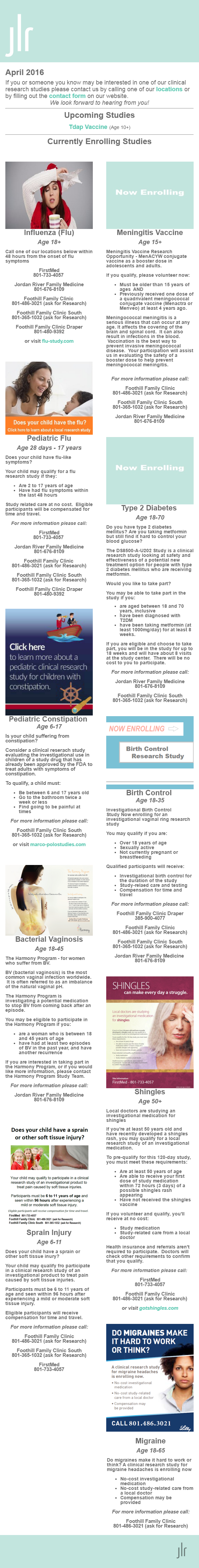 We are a unique research company in Salt Lake City with over 25 years of experience conducting clinical trials for the pharmaceutical industry, specializing in Phase II, III and IV clinical trials.