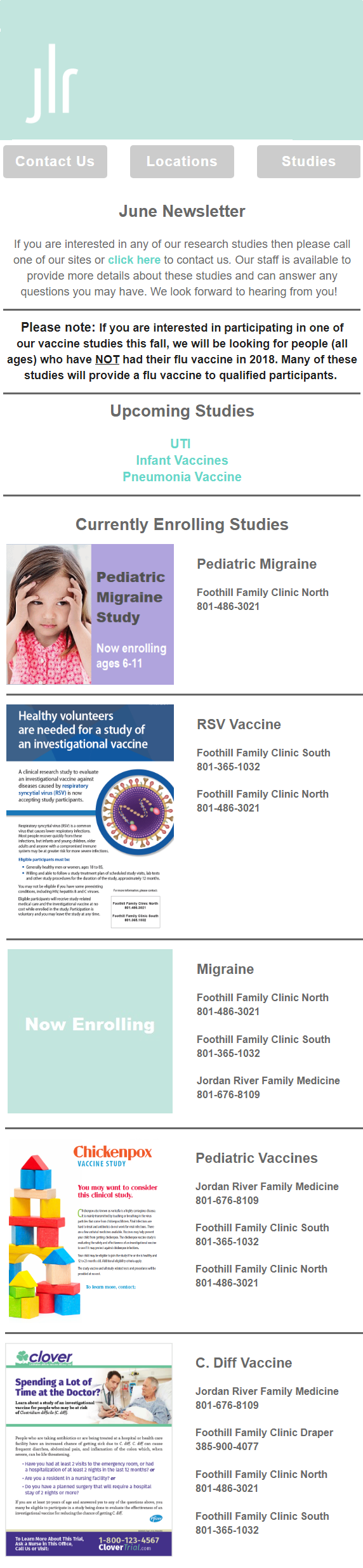We are a unique research company in Salt Lake City with over 25 years of experience conducting clinical trials for the pharmaceutical industry, specializing in Phase II, III and IV clinical trials.