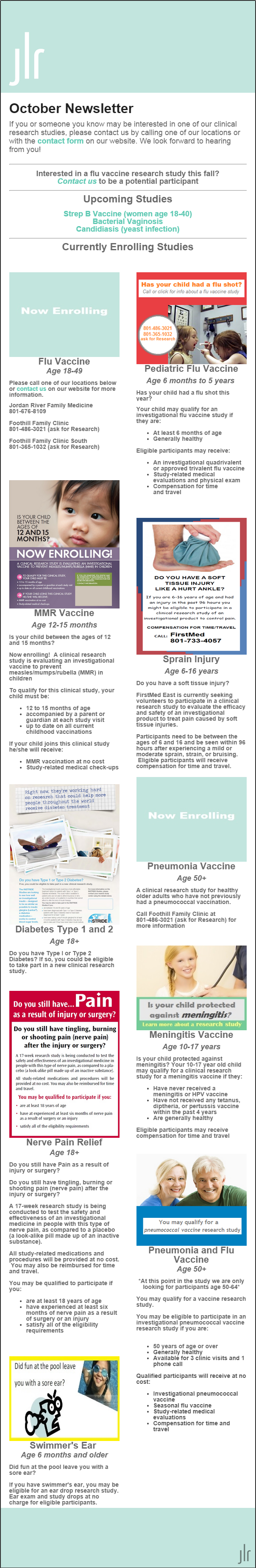 We are a unique research company in Salt Lake City with over 25 years of experience conducting clinical trials for the pharmaceutical industry, specializing in Phase II, III and IV clinical trials.