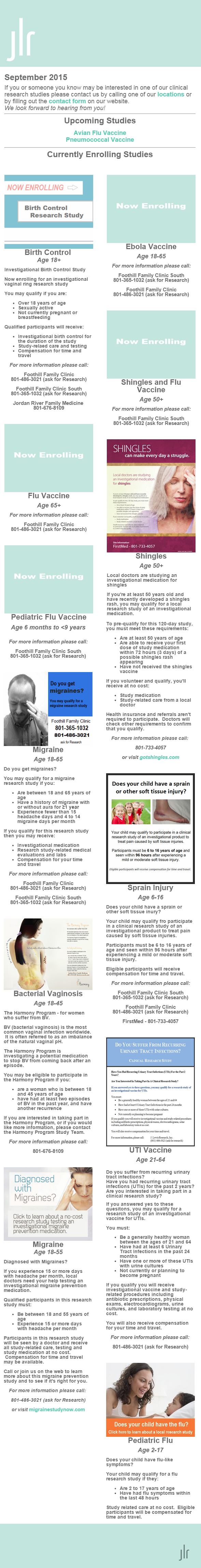 We are a unique research company in Salt Lake City with over 25 years of experience conducting clinical trials for the pharmaceutical industry, specializing in Phase II, III and IV clinical trials.